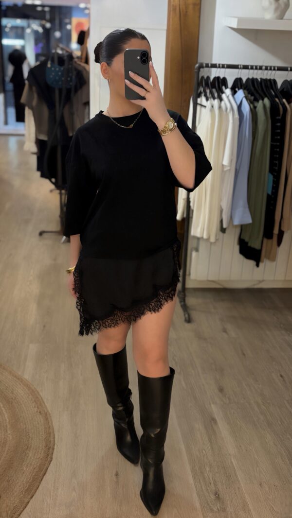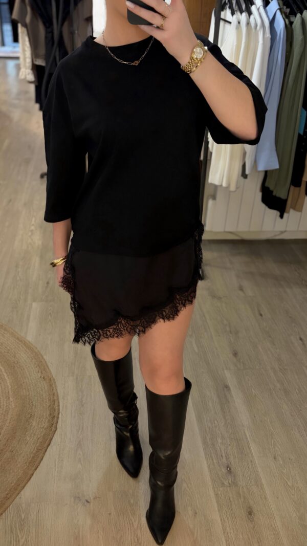 T SHIRT LONG DENTELLE – NOIR